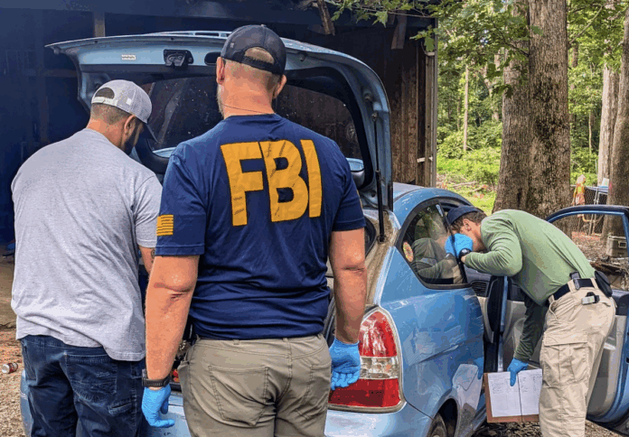 FBI agents search a vehicle during Operation Take Back America/Operation Summer Heat on Aug. 26, 2025. (Photo courtesy FBI via X)