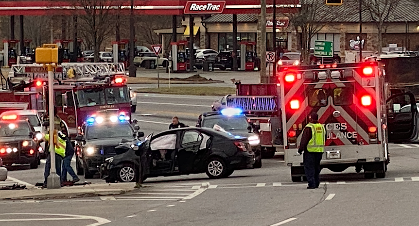 The crash happened around lunchtime at the intersection of US 441 Business and GA 105 in Cornelia on Friday, March 18, 2022. (nowhabersham.com)
