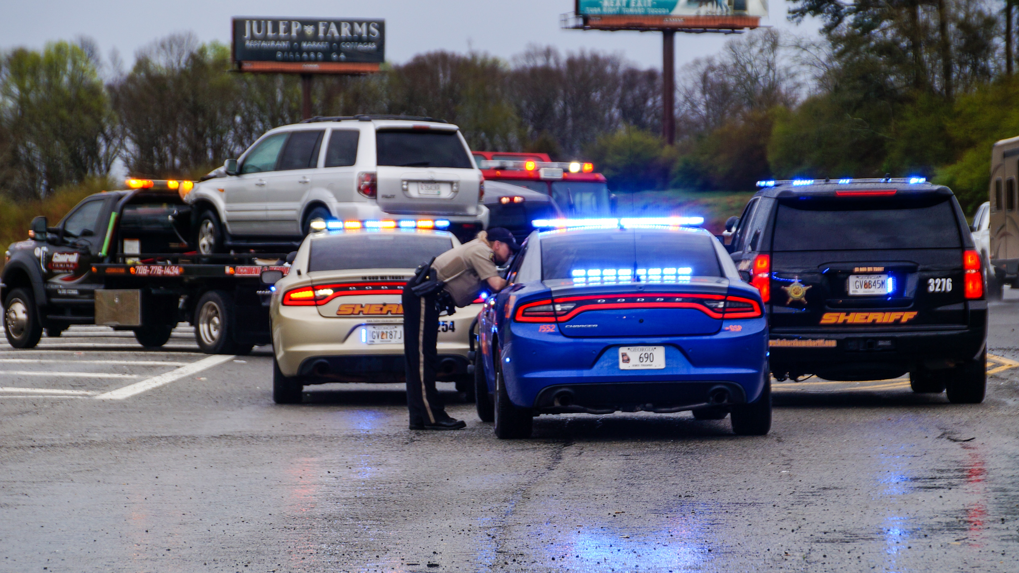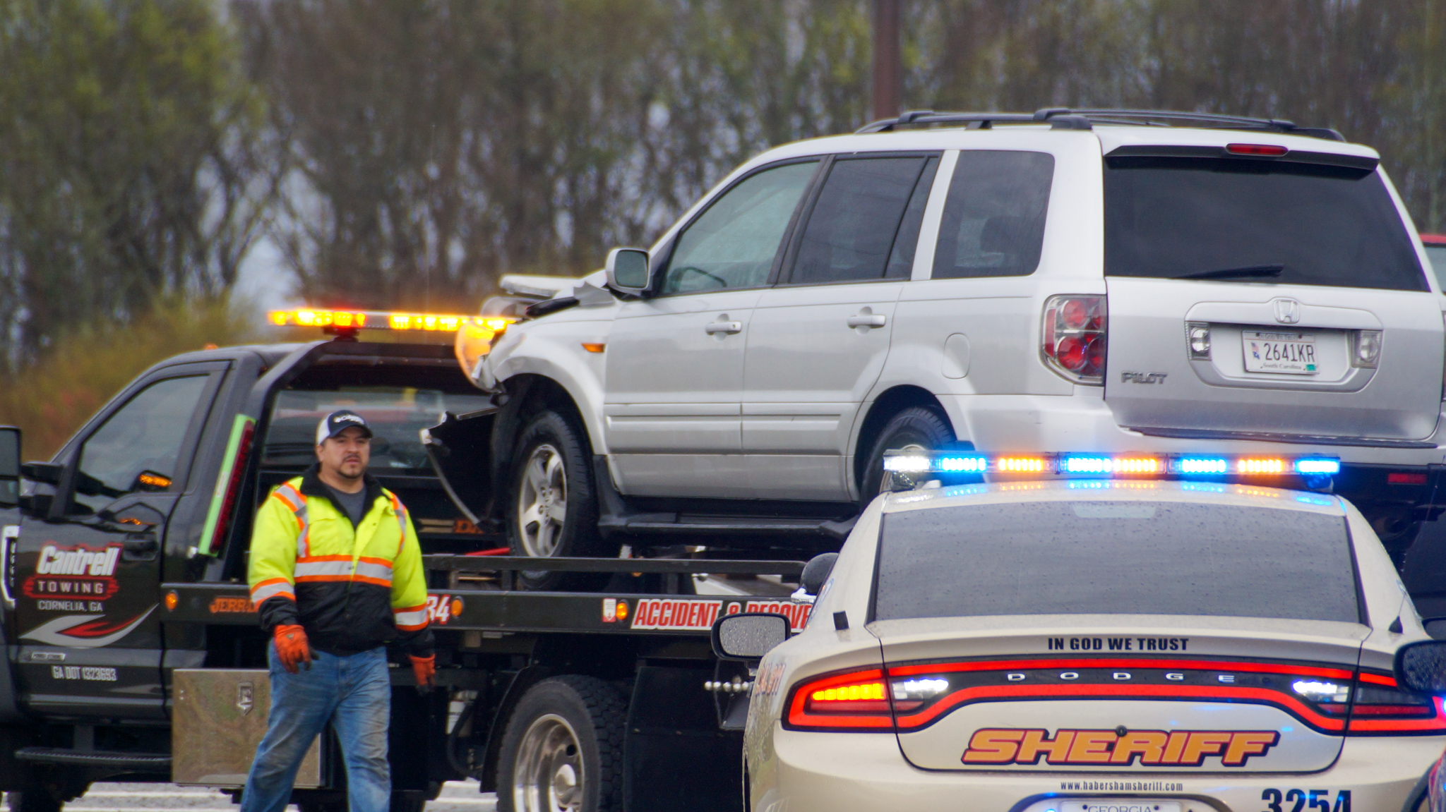 Around 3:26 p.m. Tuesday, a wreck occurred on GA-365 at Cody Road, across from the Habersham Hills Cinema, between a Toyota Tundra and a Honda Pilot. The GSP, Habersham County Sheriff’s Office and Habersham Emergency Services responded to the scene.