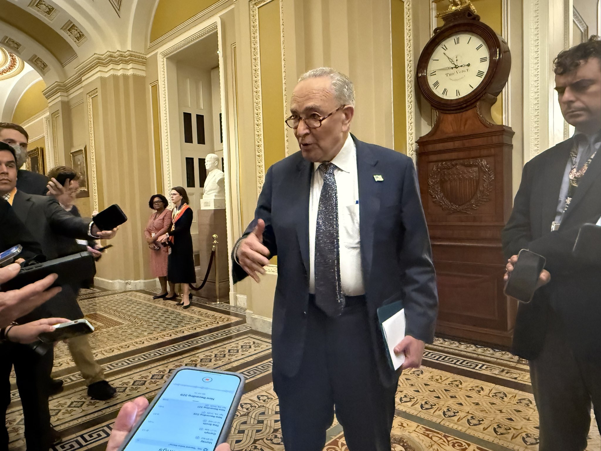 “This is not what the law requires. This is a mockery of the truth and an insult to the survivors. What makes this all the more sickening is that in over 1,000 instances, the Justice Department failed to follow the law and leaked the identities of over 100 victims. But do you know who the Justice Department did seem to protect? Epstein’s co-conspirators,” Schumer continued.