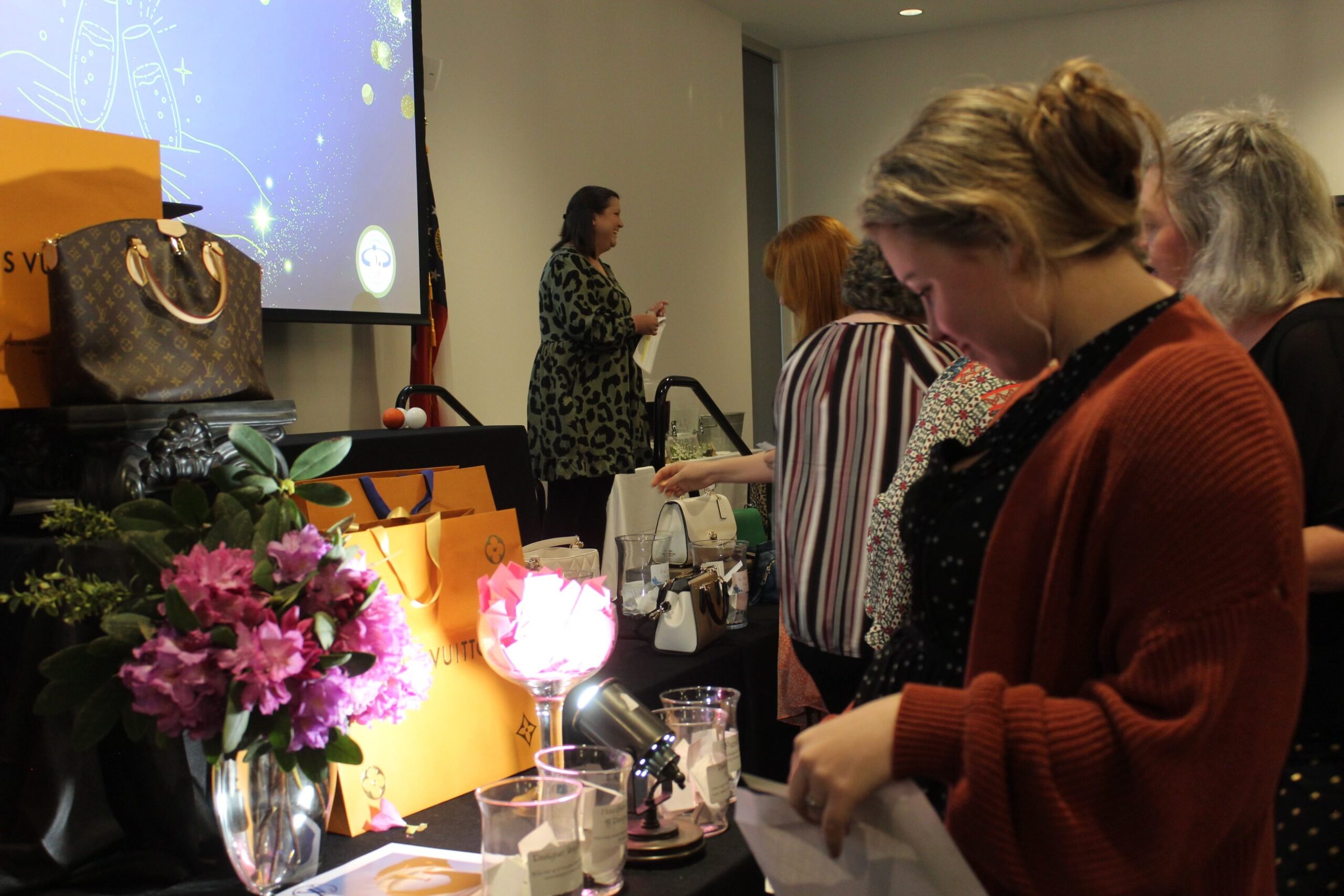 It is a night of chance – where lady luck is tested. Can you win a new designer purse, a vintage designer purse, or the grand prize of a Louis Vuitton purse? The excitement mounts as the evening goes along.
