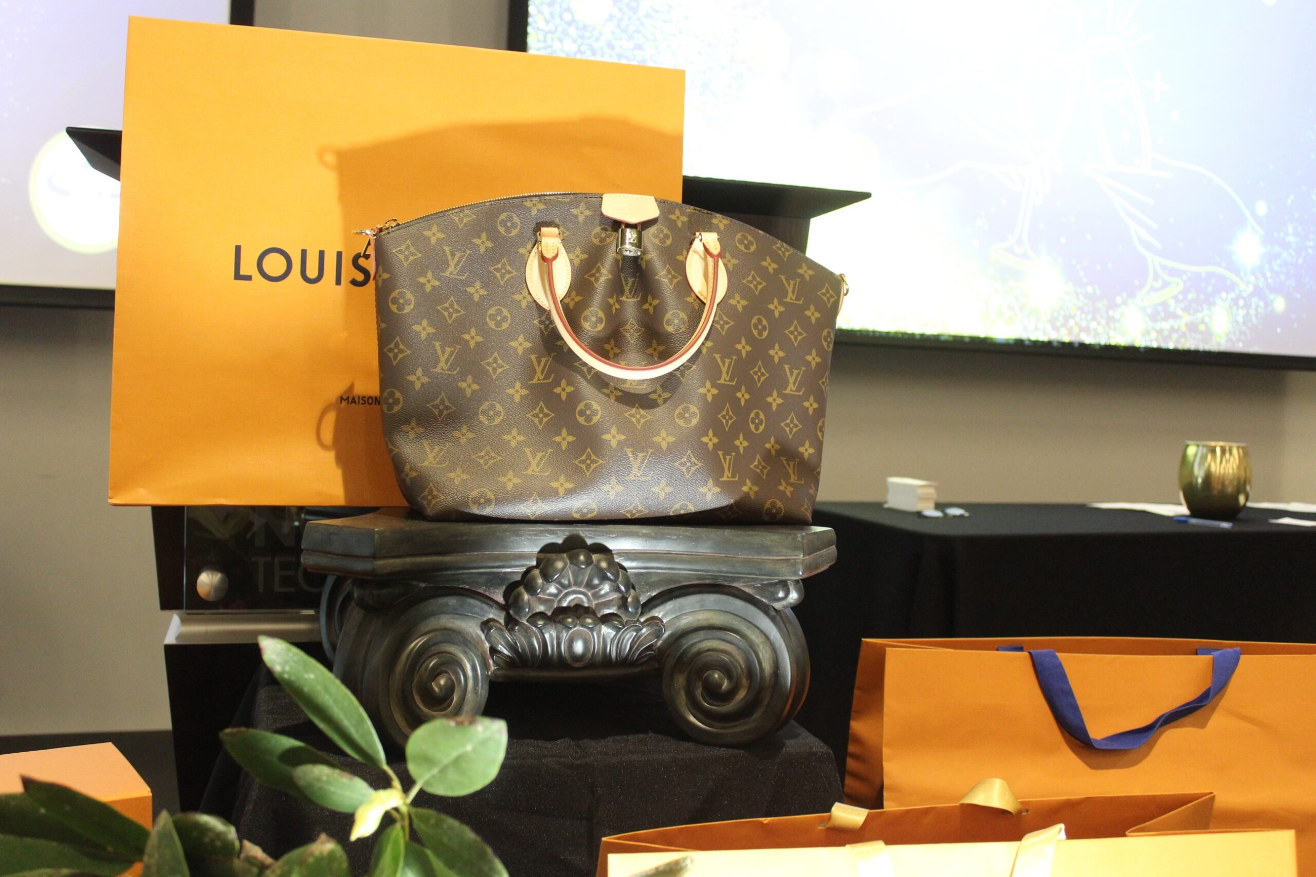 Everyone who purchases a ticket to the event receives a raffle ticket for a designer bag. If a table is purchased, each person at the table receives a raffle ticket for the Louis Vuitton purse.