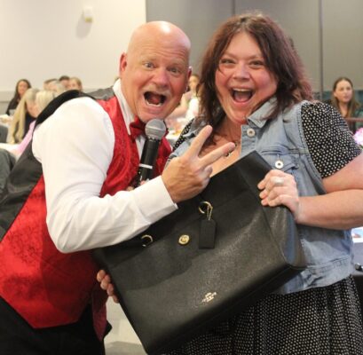 John Krippner, the Emcee for the evening, fills the night with laughter and games to win even more raffle tickets for more opportunities to take home purses! During the evening, Krippner will pull names from various containers to win designated designer purses. Designer names such as Coach, Tory Burch, Kate Spade, Longchamp, Marc Jacobs, Dooney and Burke, and Michael Kors.