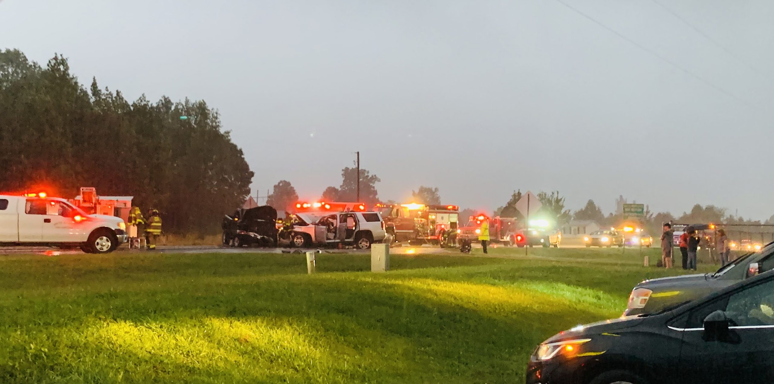 A Clermont mother and her two children were among four people injured in a head-on collision on U.S. 129/Cleveland Highway Thursday evening, October 6, 2021. The accident shut down the highway for several hours during the evening commute. (photo by Michael Tanksley)