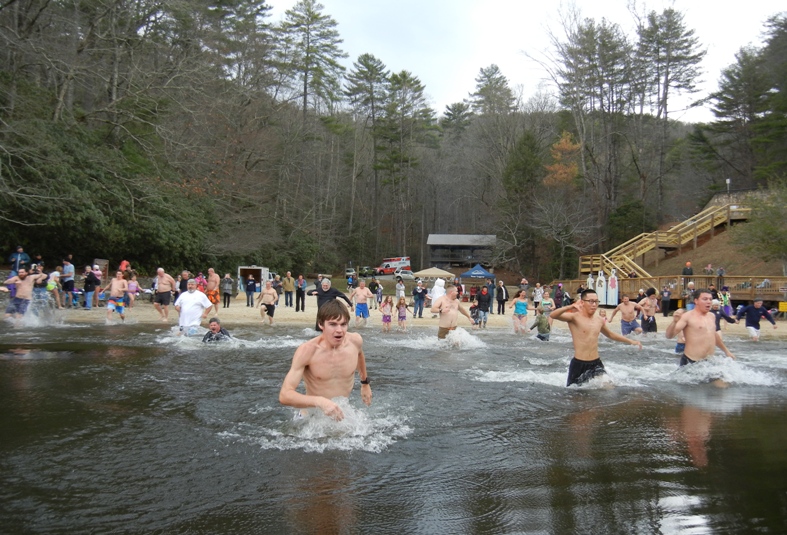 (Helen) – It was a dreary day with overcast skies and a slight mist in the air but that did not dampen the spirits of the Polar Bear plungers at Unicoi State Park, Saturday.