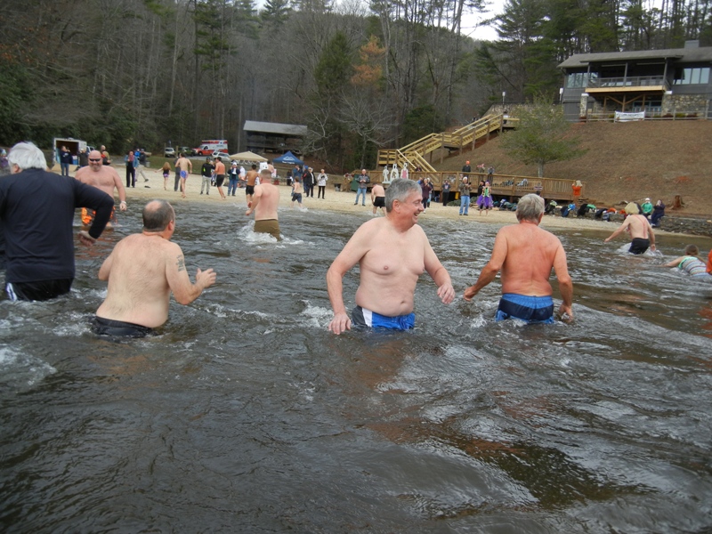 The event included two raffles. The plungers raffle was for a stay at the lodge and Stacy Green won that. She and her whole family participated in the plunge. A second raffle involved participants guessing the air and water temperature. Barry Harrison’s guess was the closest to the actual temperatures of 38 degrees for the air and 44 degrees for the water. He won two jars of Unicoi Preserves.
