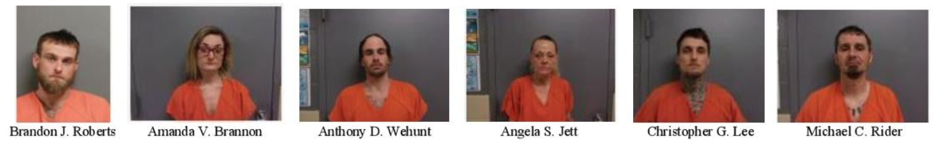 Deputies arrested four Lumpkin County residents: Brandon Joshua Roberts, age 31; Amanda Victoria Brannon, 24; Anthony Dustin Wehunt, 34; and Angela Samantha Jett, 49. They also took into custody 29-year-old Christopher Gage Lee of Dawson County 35-year-old Michael Carlton Rider of Hall County.