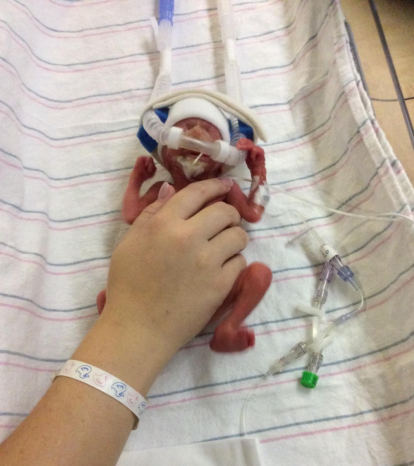 At 20 weeks, Haley went into early labor. At the hospital, the baby was already crowning. Dr. Tommy Hatchett delivered the grave news that the child would likely not make it. The next morning, Haley was dilated at 3 centimeters but still holding on. Dr. Hatchett made a call and performed an emergency cervical cerclage, basically stitching the cervix closed. Haley remained in the hospital two weeks and then went back and forth during the third week. She remained pregenant.