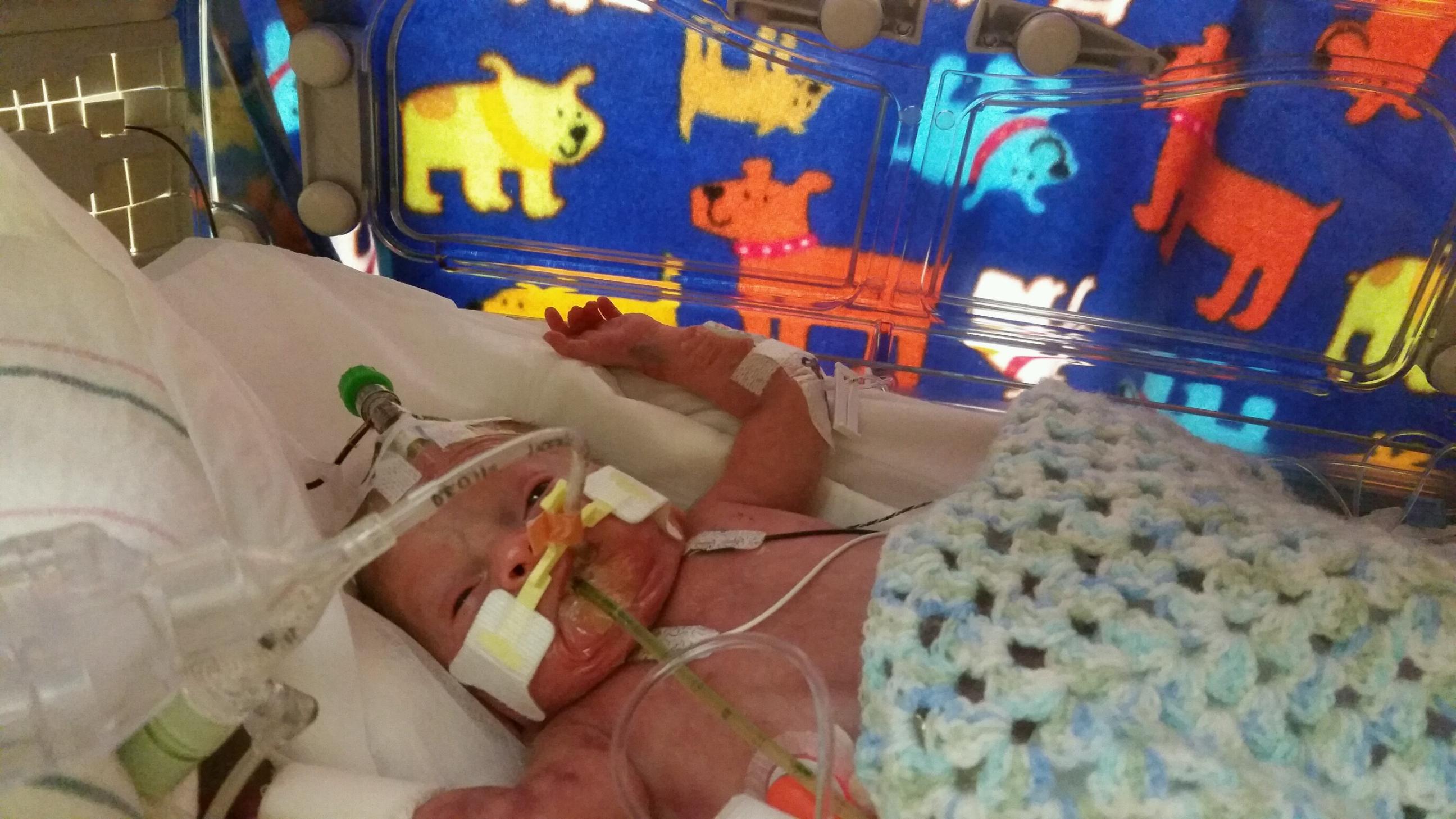 On June the 7th, Haley’s water broke and she was sent down to Northside Hospital in Atlanta. She was 24 weeks pregnant. Doctors at Northside tried to prepare her that the baby likely would not live, would not be able to breathe on his own and other dire warnings. Edward Colton Ledbetter was born on June 10, 2014. He weighed just 1 lb 9 oz and was 12.5 inches long. Colton was taken to the neonatal intensive care unit (NICU) where he spent the first hour of his life on a ventilator.
