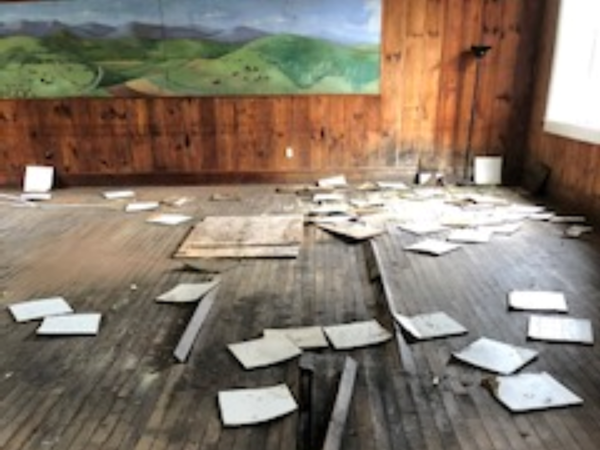 The rock fireplace remains intact, and a painting that hung on the wall was kept and placed in storage for the time being. The painting measures 4’x16’ and is in good condition. According to Clarkesville City Manager Keith Dickerson, the city intends to have it restored and remounted in the future, although they’re unsure of who the artist is.