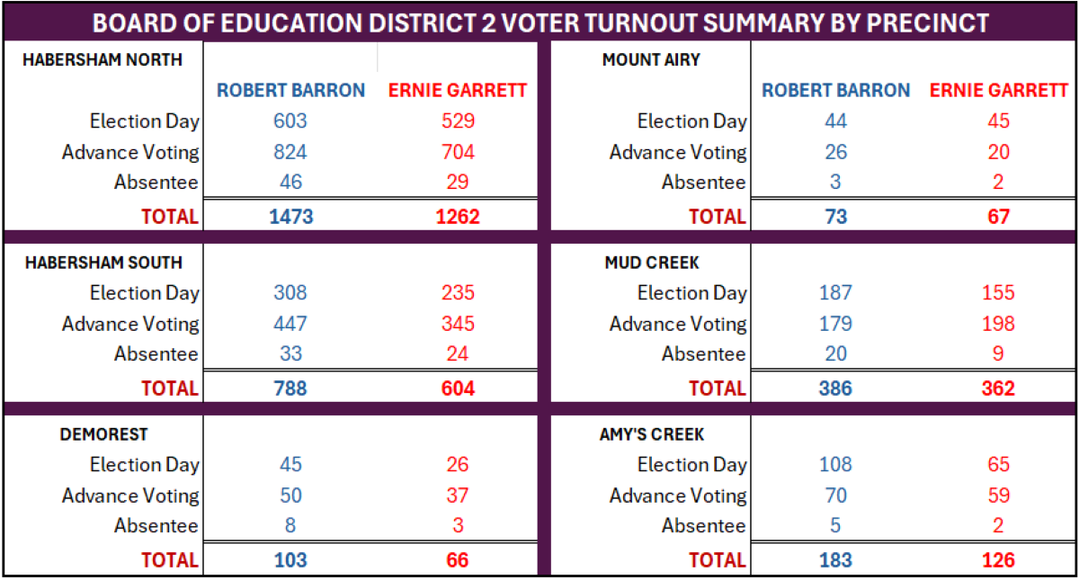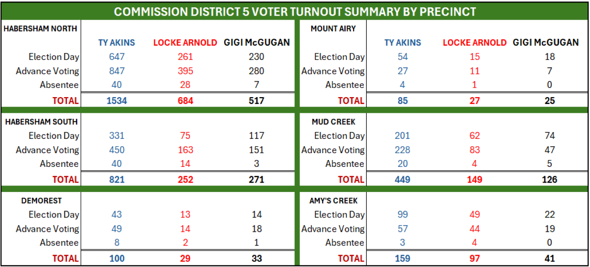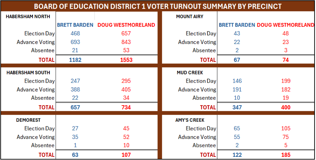 Below is a breakdown by the numbers of how each precinct performed during the primary election period.