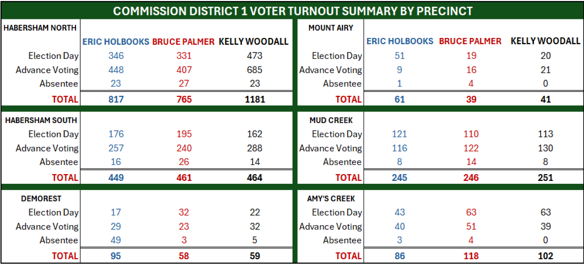However, before the run-off, there may be a recount since Holbrooks only received 20 more votes than Palmer. According to Palmer, if the vote count doesn’t change once the election is certified, he will be requesting a recount. The winner of the recount will face Woodall, who received 38% of the vote, in the June run-off. There were a total of 5,492 ballots cast in the District 1 race.