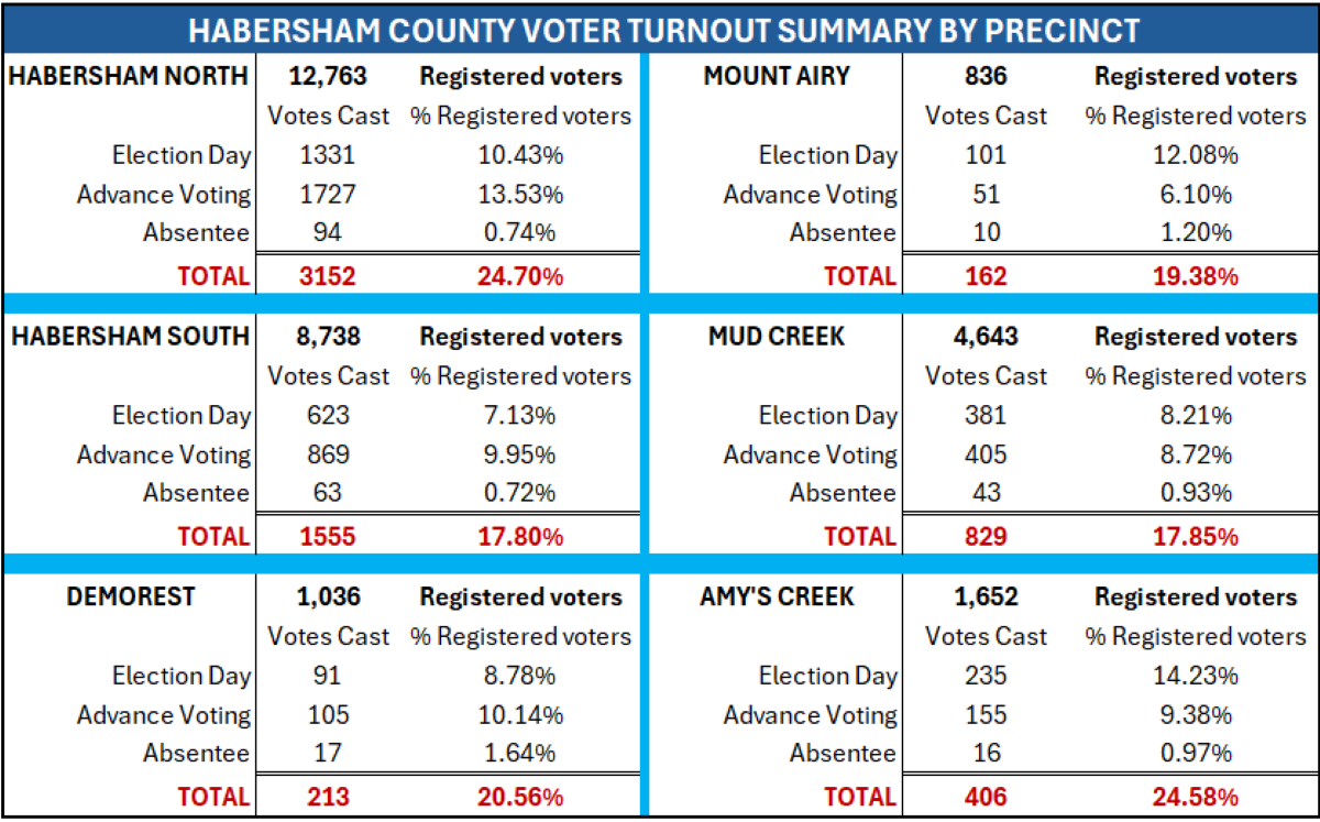Voters across the state turned out to vote on Tuesday in local primaries. Habersham County had a voter turnout during early, absentee, and day of voting of 6,317 or 21.29 % of 29,668 active registered voters in the county. With the primary election over and a Habersham County Commission District 1 run-off in June, here’s a closer look at voter turnout in Habersham County.