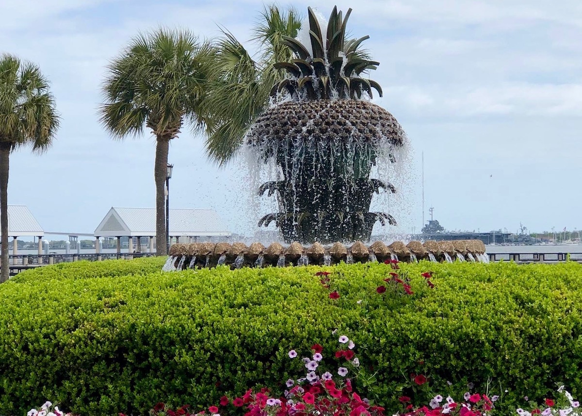 One block east of Bay Street (toward the water) is the Waterfront Park, which overlooks the Charleston Harbor and the Cooper River. With beautiful views of the harbor, the park is the perfect place to sit a while before moving on. Hundreds of benches, green space, and family swings are available to enjoy. At the north end of the park is the fountain topped with a Palmetto Tree sculpture, the South Carolina logo. Beyond the fountain is a splash pad for children.