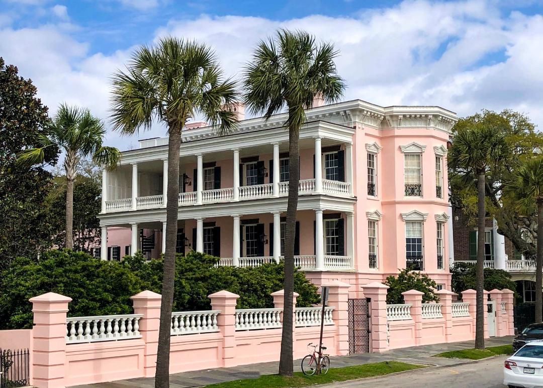 After three or four blocks, you’ll pass Rainbow Row, a series of row houses painted pastel colors, on the left. Rainbow Row has an interesting history. The area fell in disrepair after the Civil War. The area was saved when Dorothy Porcher Legge bought three of the row houses to renovate around 1900. She used pink from the Caribbean for the exterior color of the three. As other people began to restore the section, they also used pastel colors. The rainbow-colored houses are the top photographed location in Charleston.