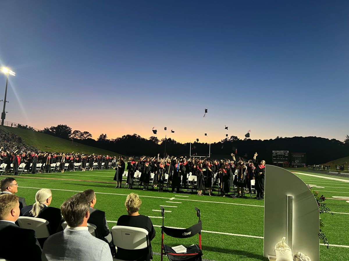 As the sun set behind the stadium, caps were tossed high in the air in celebration. A dazzling fireworks display lit up the sky, marking the end of one chapter and the beginning of another for the Class of 2025.