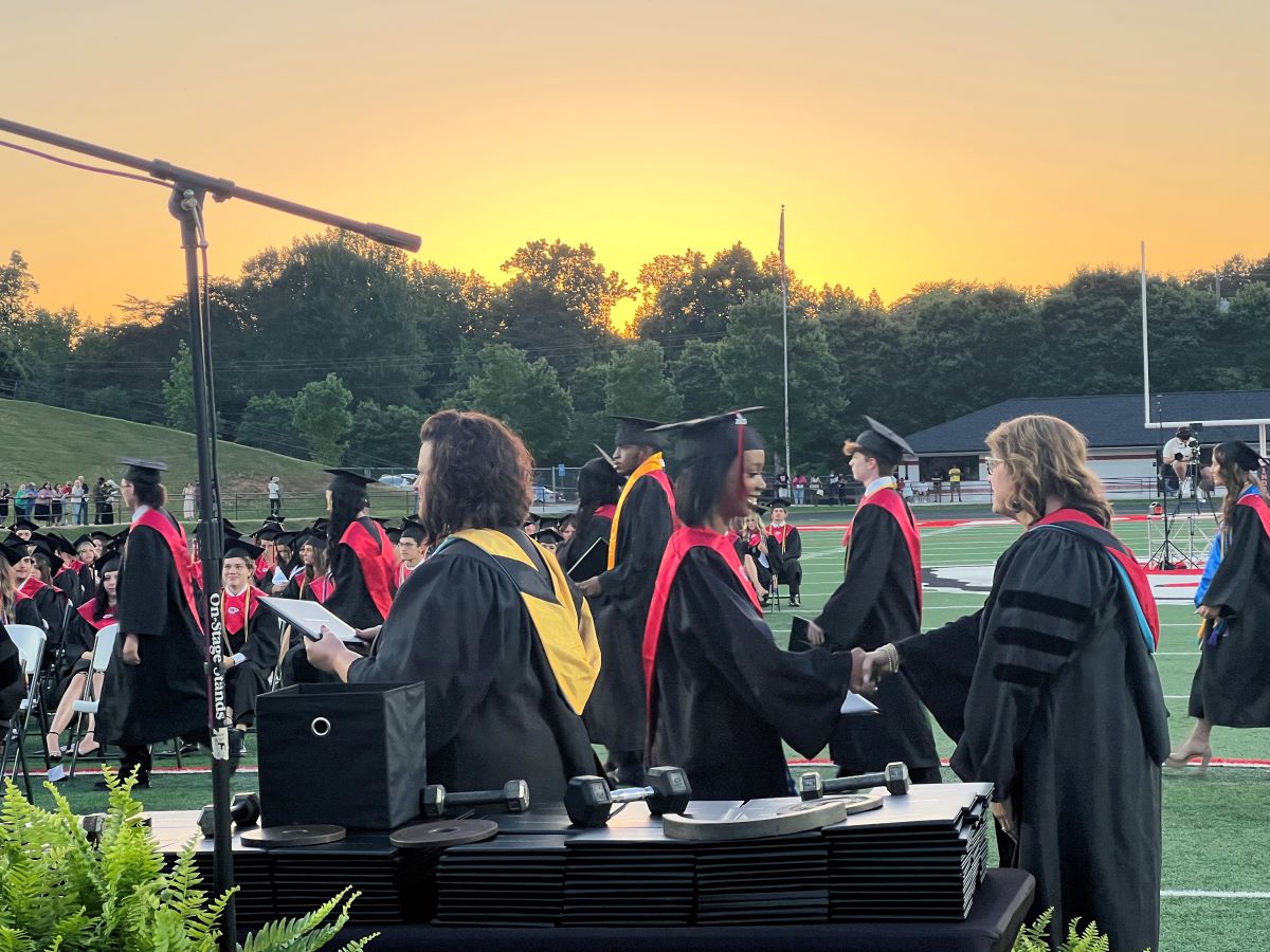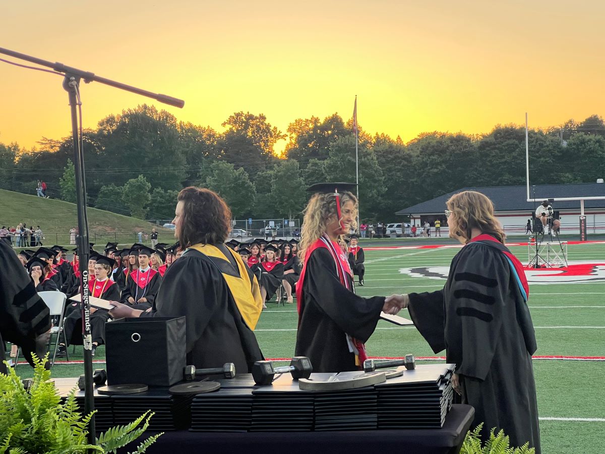 Dr. Connie Franklin, principal of Stephens County High School, proudly presented diplomas to each member of the graduating class, pausing to offer congratulations and smiles as the students crossed in front of the stage.