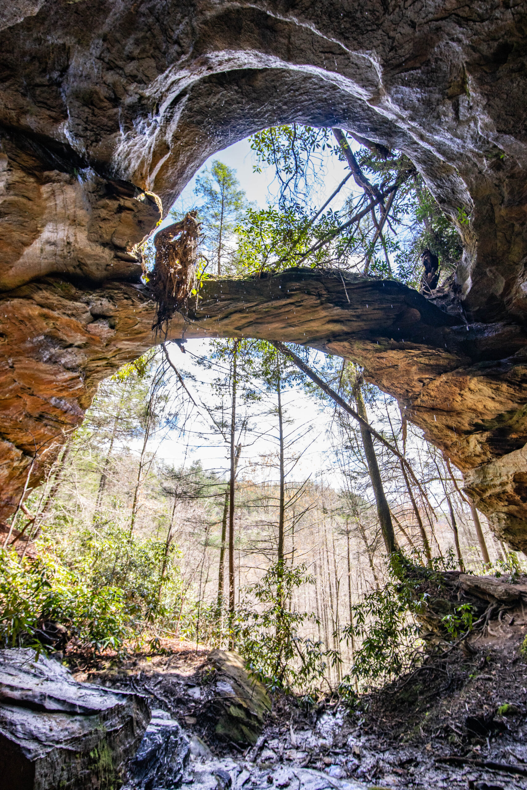 I had visited Natural Bridge, the most commonly visited spot, many years ago but this time I wanted to see something a bit more… off the beaten path. This led me to the Copperas Falls trailhead. Unlike the arches out west, the ones in the Red River Gorge aren’t all that easy to find. They are mostly located in dense forests, and many of them are not very large. Hopewell Arch is one of the most famous not located on an official trail. This arch looks like a double arch despite not officially qualifying as one.