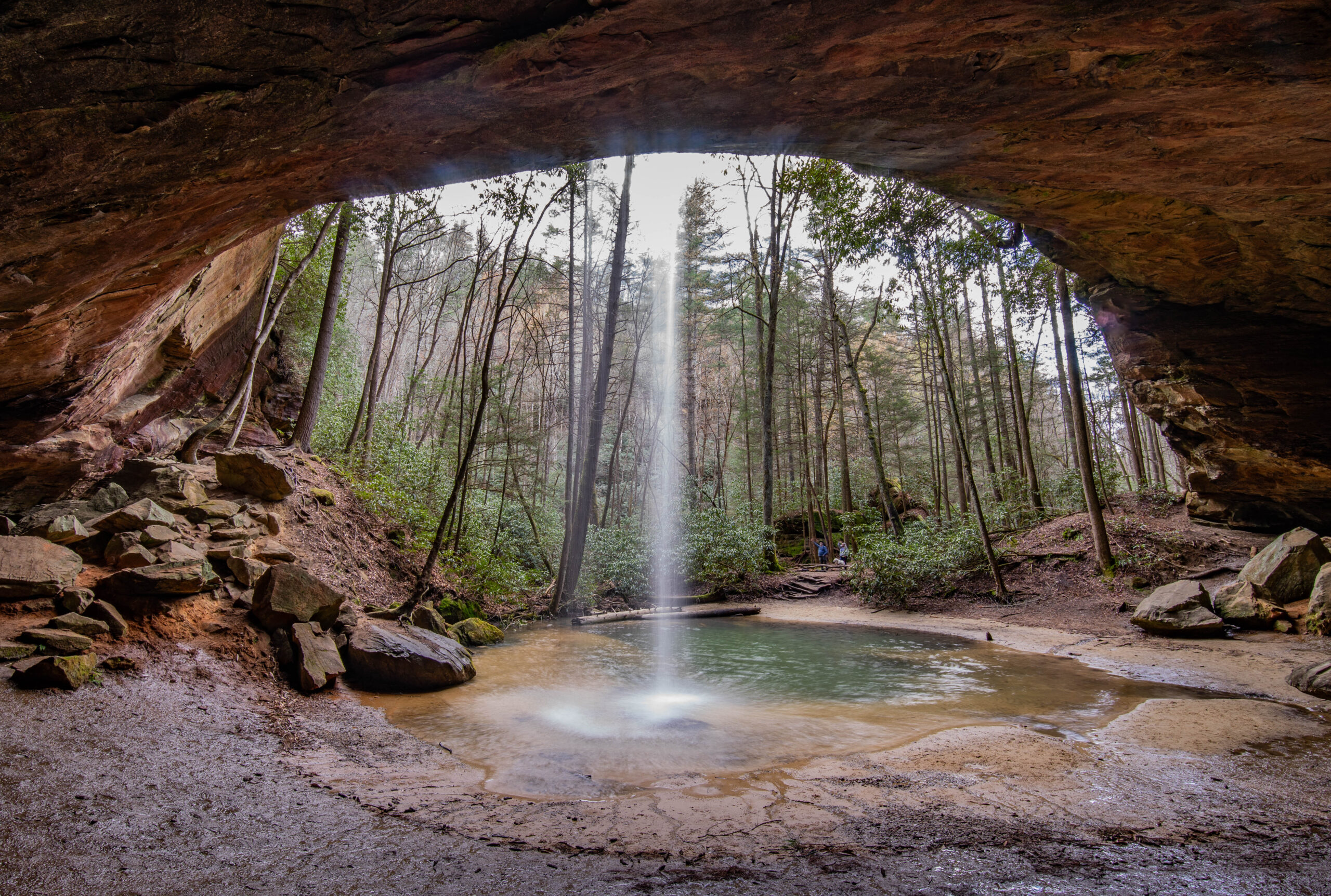 The falls pour over a large sandstone outcrop that forms a large cave behind them. This leaves plenty of room to walk behind and get some very cool shots of the waterfall. There aren’t a ton of places you can do this on the East Coast and each one is special.