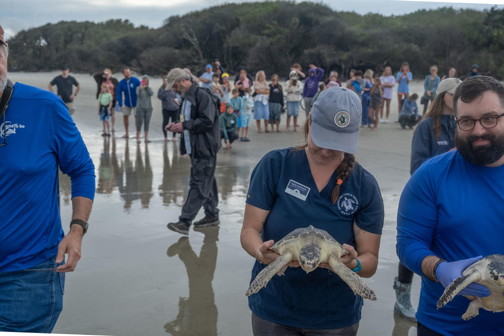 Along with Jekyll Island’s Georgia Sea Turtle Center, volunteers came from the New England Aquarium, Mystic Aquarium, Atlantic Marine Conservation Society and New York Marine Rescue Center to help with the release.