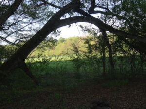Red foxes have dens inside the circle of trails and also at the upper end of the meadow. Early one morning this spring I saw a fox catch what looked like a rabbit and carry it to the upper den. On one occasion I saw a fox mamma teasing someone’s dog to chase her, no doubt to get the dog away from the den. Another time a dead mole lay in the entrance of a den, left there by the mamma so one of the kits (young fox) would find it and to eat it and wean it off milk.