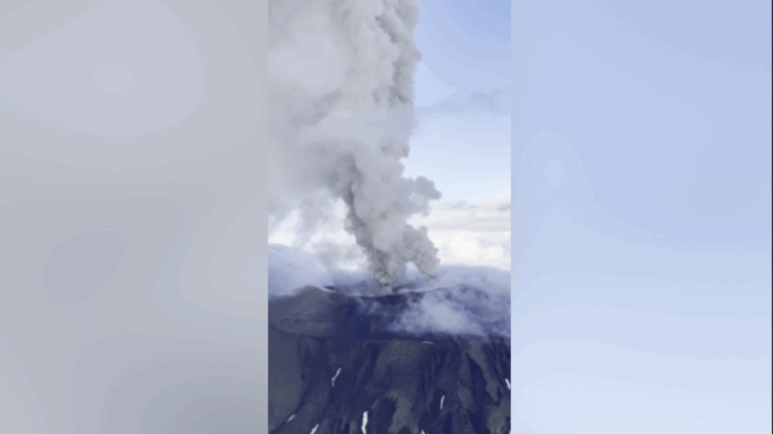 “The plume is spreading eastward from the volcano toward the Pacific Ocean. There are no populated areas along its path, and no ashfall has been recorded in inhabited localities,” Kamchatka’s emergencies ministry wrote on Telegram during the eruption.