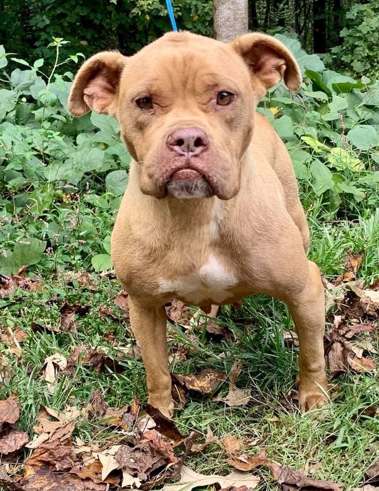 Hazel might look grumpy, but she’s friendly as can be with both humans and other dogs. She likes to explore outside and play with her friend Pogo, but more than anything would love to be part of a family.