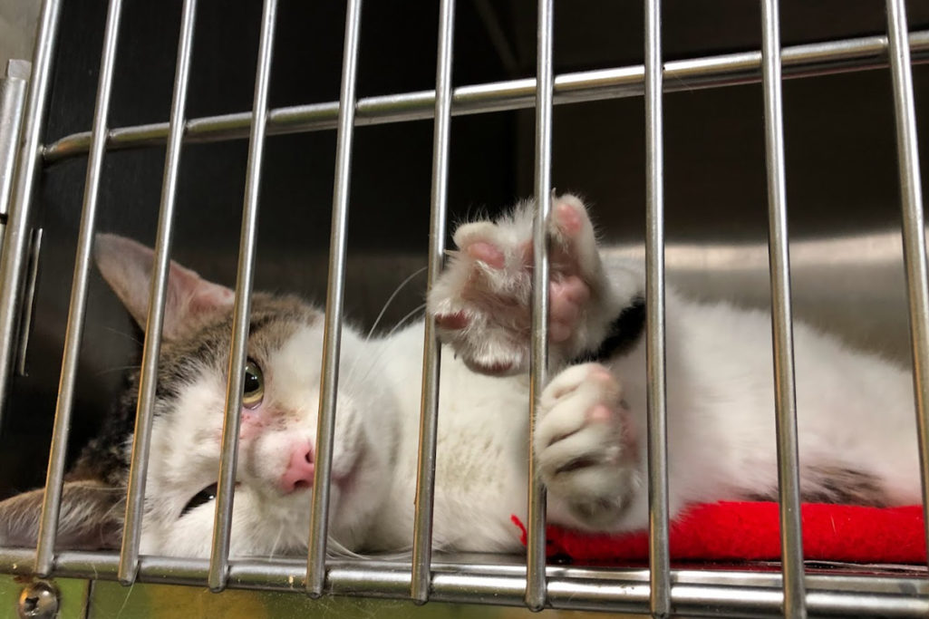 You’ll find Hair of the Dog reaching out of his quarantine kennel for a pet from the shelter staff as they help him on the road to recovery, and with just a day left in his final round of treatments, he’s beyond excited to find his human.