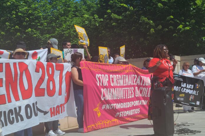“This kind of entrapment is made to cause panic throughout immigrant households,” Delgado said. “Because of that, advocates like ourselves must change the narrative and rally our communities behind opposing this bill for what it is: xenophobic, radical legislation.”
