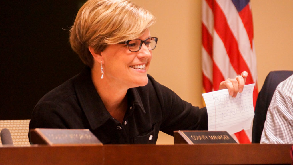 The commission echoed her excitement after unanimously voting to make her county manager. They applauded her appointment, exchanging fist-bumps and words of praise.