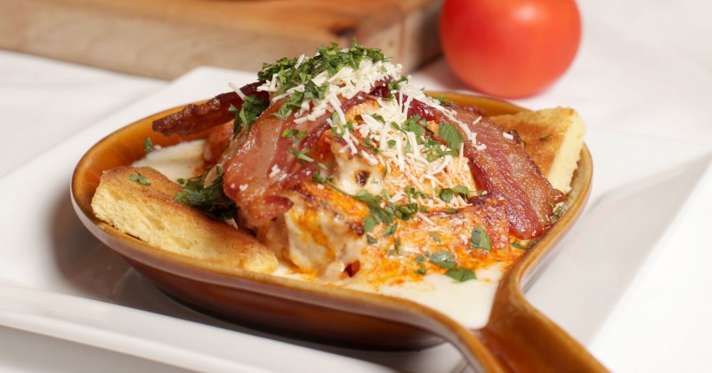 For each Hot Brown, place two slices of toast with the crusts cut off in an oven-safe dish – one slice is cut in half corner to corner to make two triangles and the other slice is left in a square shape – then cover with 7 ounces of turkey. Take the two halves of Roma tomato and two toast points and set them alongside the base of the turkey and toast. Next, pour one-half of the Mornay sauce to completely cover the dish. Sprinkle with additional Pecorino Romano cheese. Place the entire dish in the oven. The suggested bake time is 20 minutes at 350º. When the cheese begins to brown and bubble, remove from the oven, cross two pieces of crispy bacon on top, sprinkle with paprika and parsley, and serve immediately.