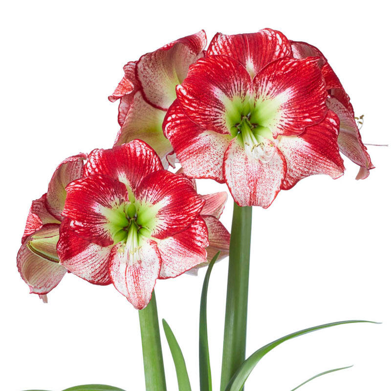 Amaryllis is a stunning addition to your holiday displays. The blooms are enormous. They make a statement! They come in a variety of colors from solid to bi-colored.