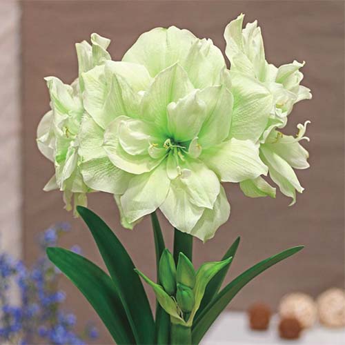 Not only do amaryllis come in a variety of colors, they are also available in single and double blooms. With a 7″ flower, they definitely will put on a show stopping performance in your holiday display.