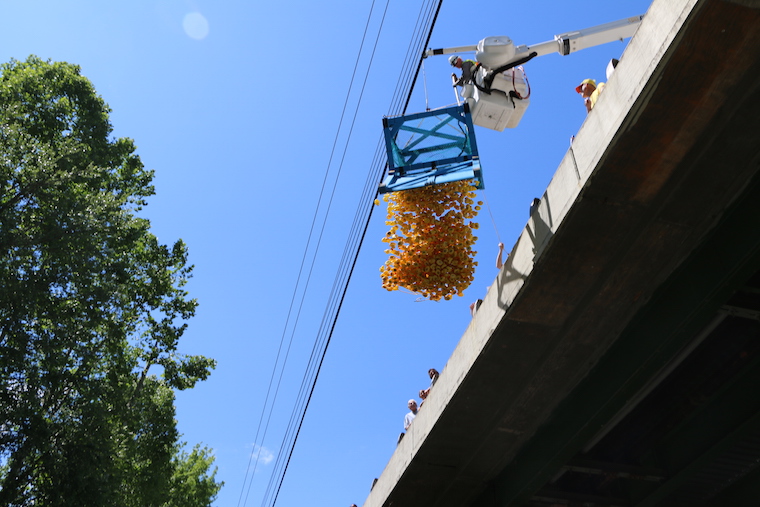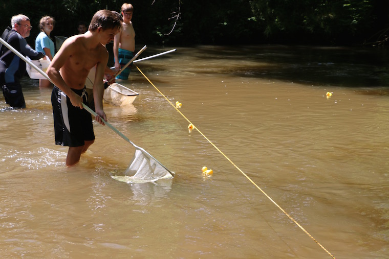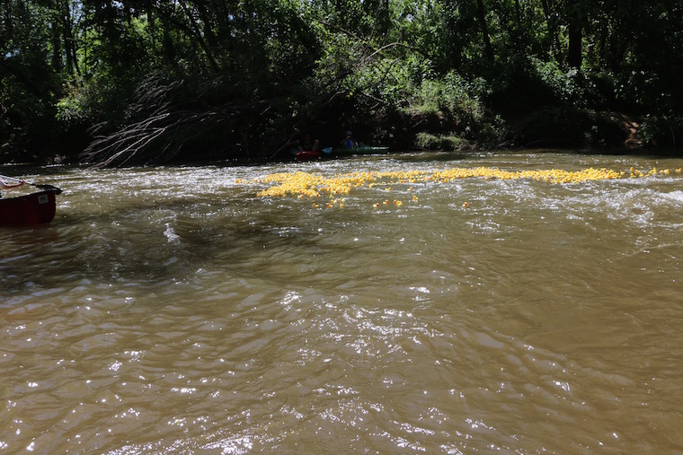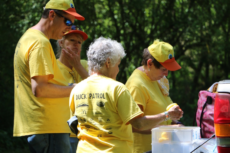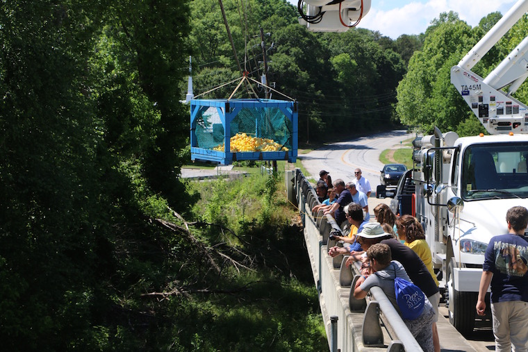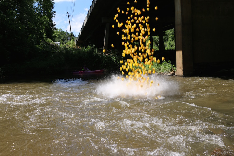 On Saturday, May 21, 2016 more than 1,000 yellow rubber ducks floated down the Soque River in a race to raise money for literacy. Each duck was ‘adopted’ for $5 and the first three to finish won cash prizes for their adopted owners.