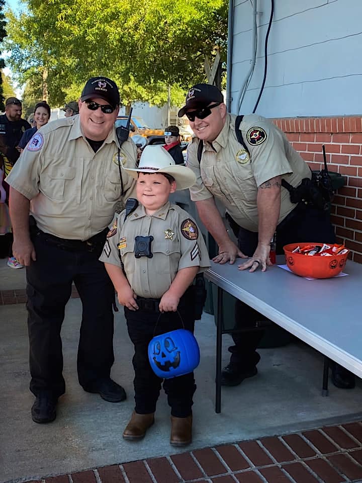 Josiah dressed as a Madison County Sheriff’s deputy. He attended Cornelia’s Downtown Trick-or-Treat and had his picture taken with two real-life Habersham County deputies.