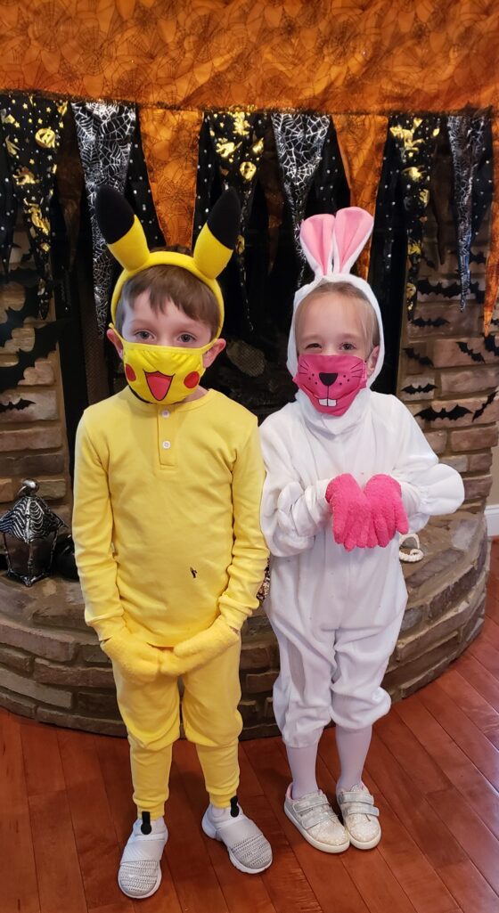 Liam Copeland dressed as Pikachu and his sister Alaina dressed as a bunny rabbit.