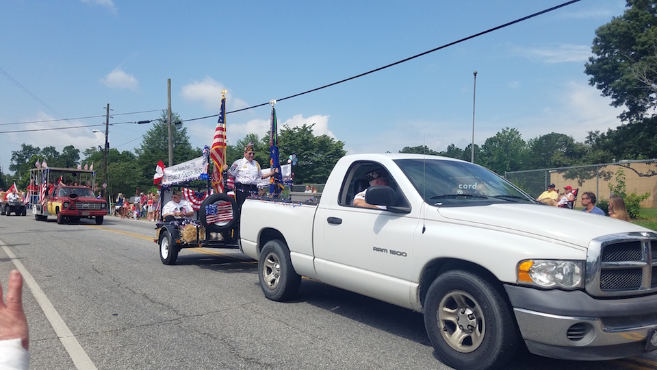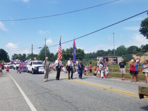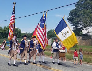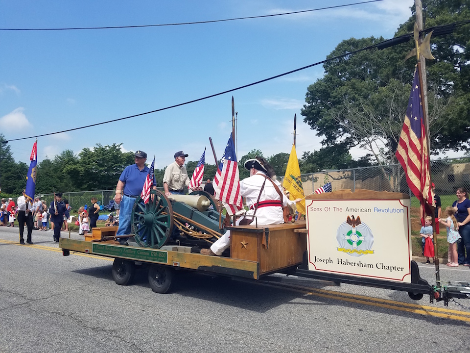 The Sons of the American Revolution – Joseph Habersham Chapter – carried the flag of the 13 colonies that declared independence from Britain on July 4, 1776.