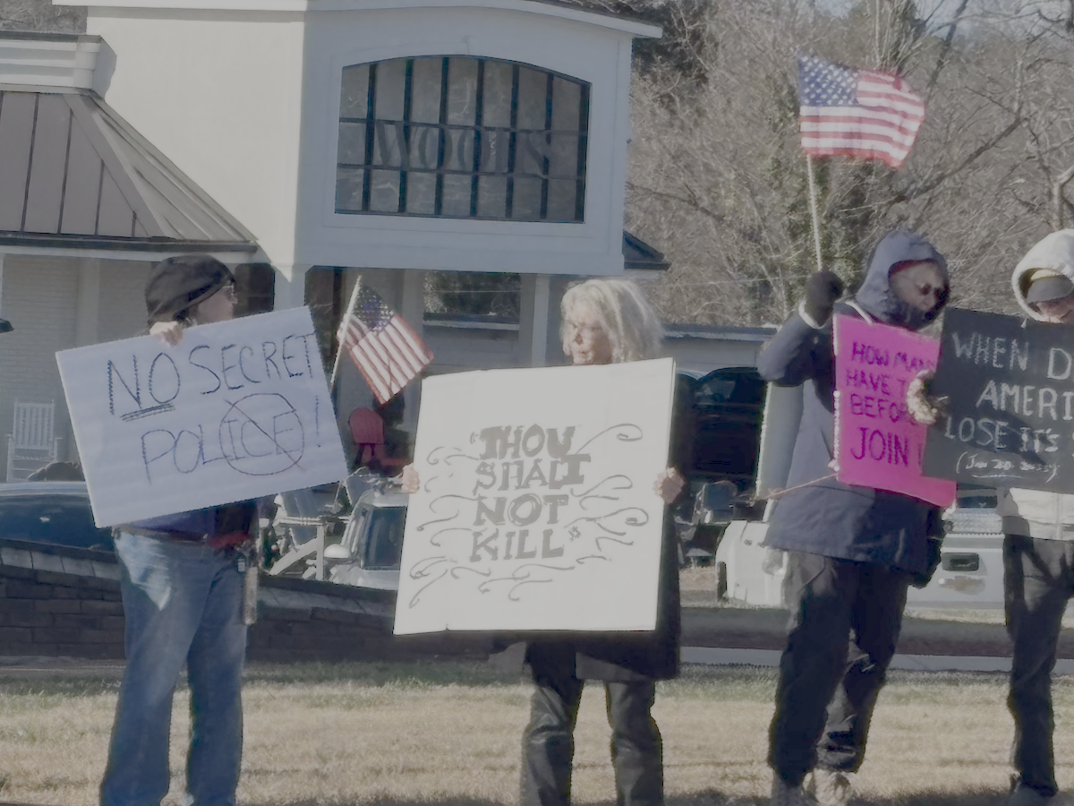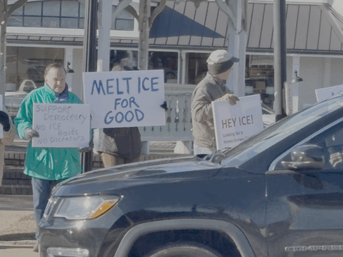 CLARKESVILLE, Ga. — Approximately two dozen demonstrators gathered on the Clarkesville square Thursday afternoon for a peaceful protest against U.S. Immigration and Customs Enforcement (ICE).