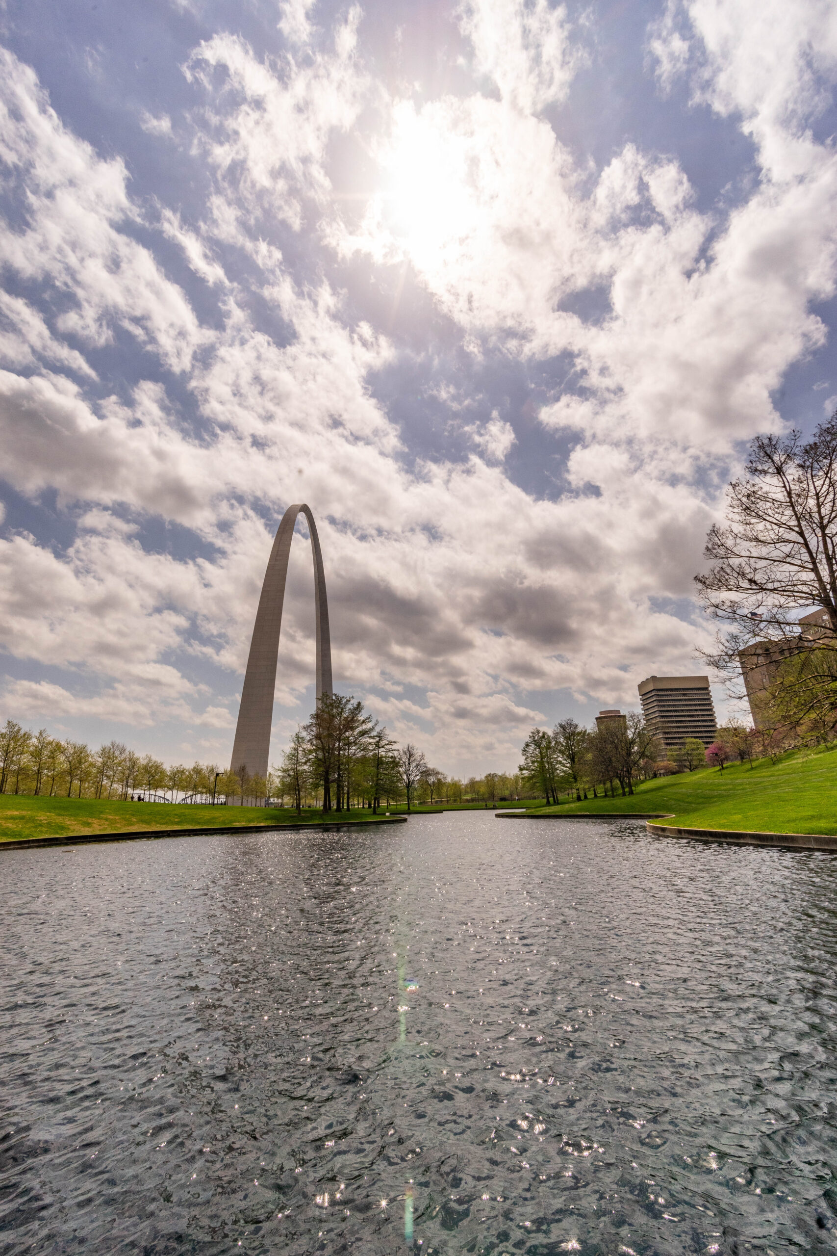 The Arch also has a pair of elevators that run up the sides. These elevators aren’t traditional straight up and down but rotate on an axis. If you plan ahead, you can ride in one of these and get a view from the top. Unfortunately, I was there with thousands of others visiting the Arch the day before the Total Solar Eclipse, so it was long sold out. I hope to get back one day and take the ride. I had to settle for catching a view of the Arch over the old courthouse from one of the nice parks that cuts into downtown St. Louis.