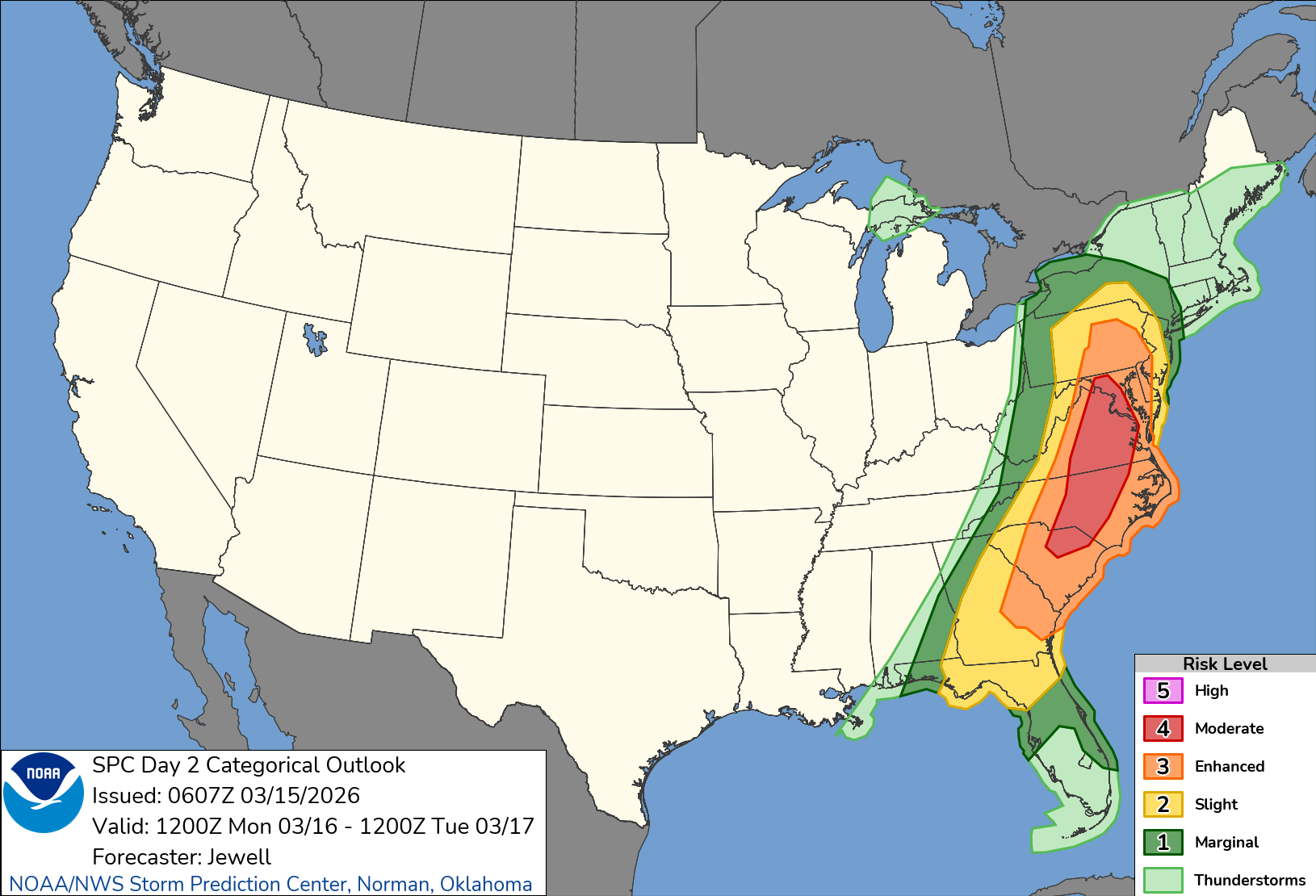 Regardless of any severe storms, winds will be very gusty immediately ahead of and just behind the front. South winds gusting at 30-35 m.p.h. are likely ahead of the front early Monday morning, with gusts from the northwest at 30-35 m.p.h. just behind.