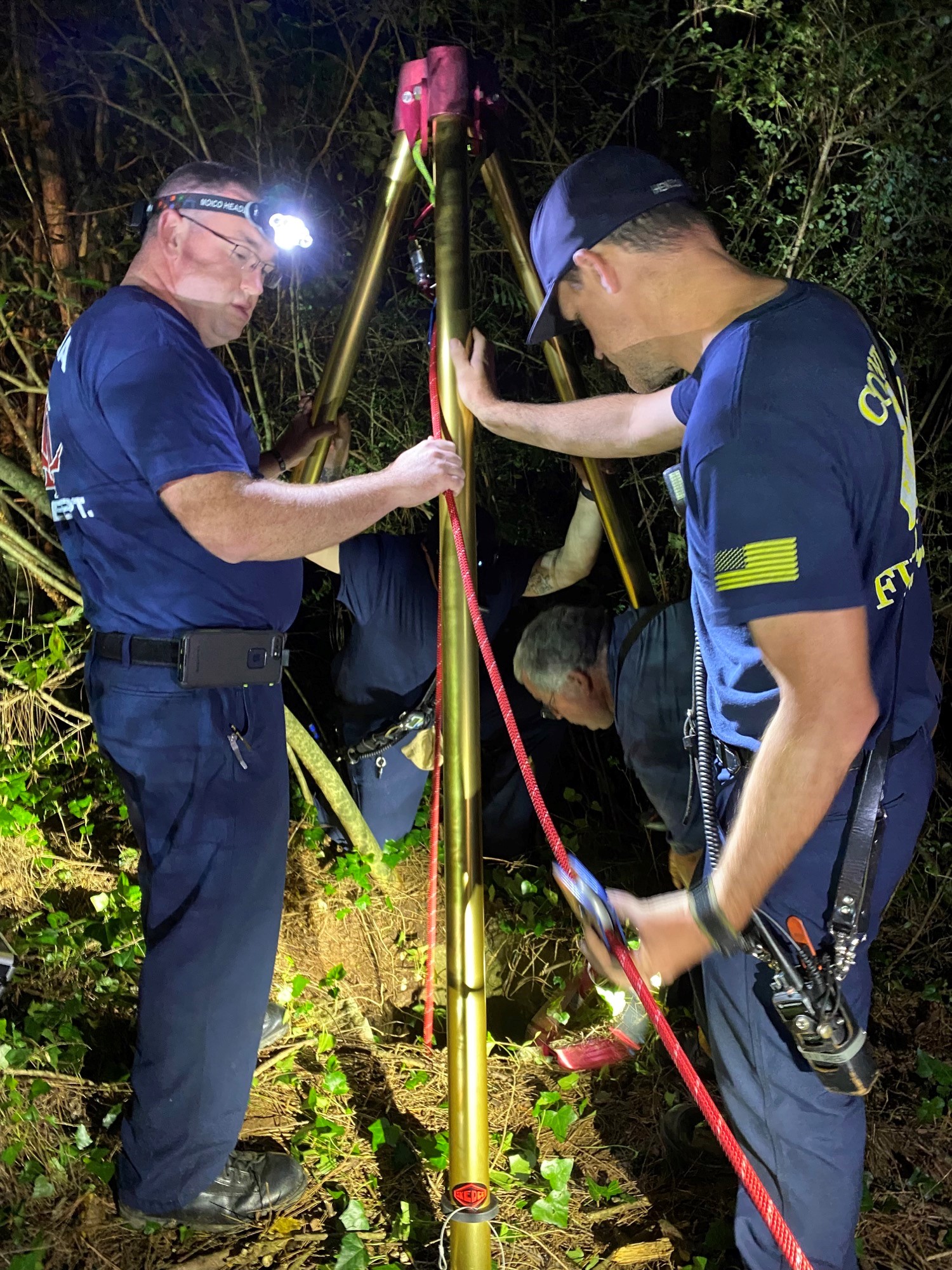 Demorest Firefighter Sam Ausburn was lowered into the well after the firefighters set up a tripod over the well, collected Zuko and both returned back to the surface safely.