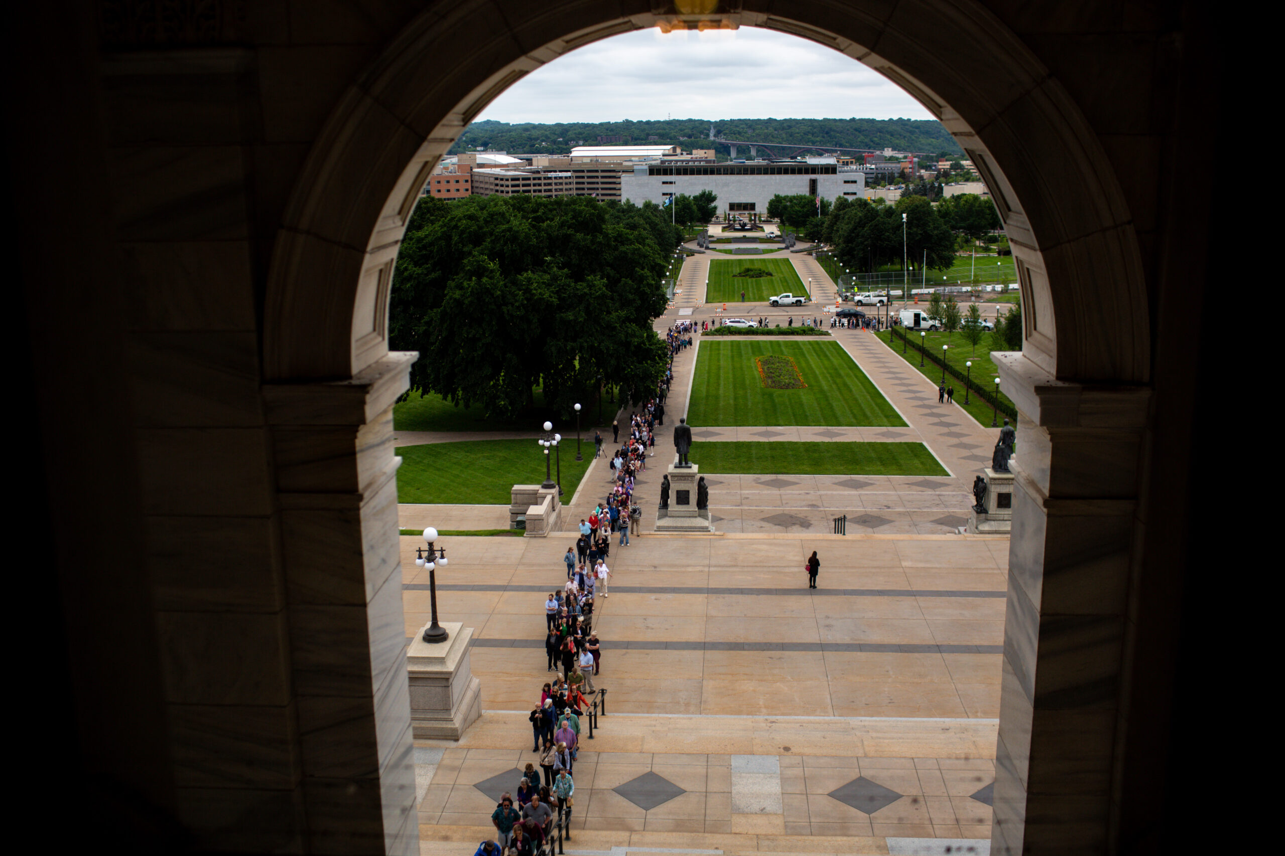 Gov. Tim Walz and First Lady Gwen Walz were the first to pay their respects when the memorial opened to the public at noon. They were followed by Republican House Speaker Lisa Demuth, her husband and Senate Majority leader Erin Murphy.