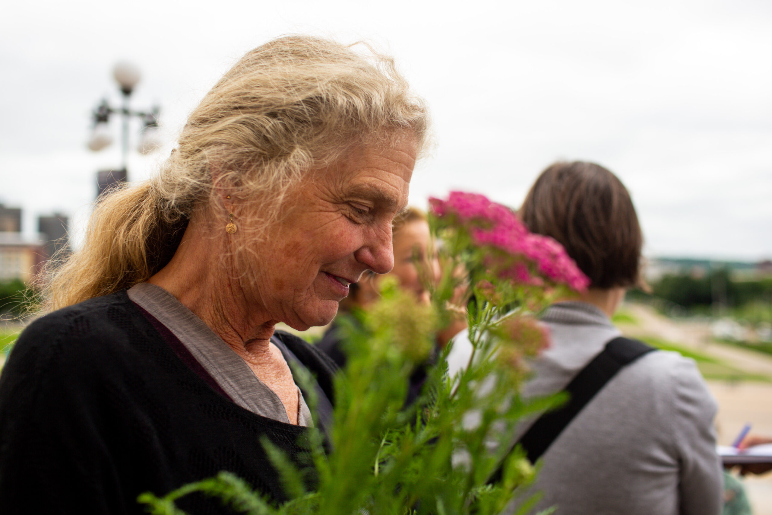 Jeff Kolstad, 79, met Hortman in passing while doorknocking and respected her work on the environment. Flowers in hand, he stood in line with his dog Gracie, who “wanted to pay a tribute to Gilbert.”
