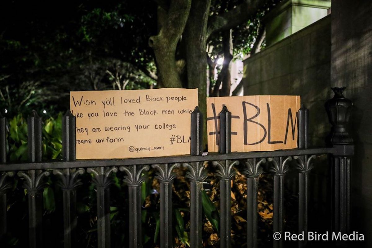 When it was all over, Athens’ streets were littered with signs and trash, but far less than on a typical UGA game day. One sign perched on the fence near The Arch drew on the towns’ affinity for sports saying, “Wish yall loved Black people like you love the Black men while they are wearing your college teams uniform.”