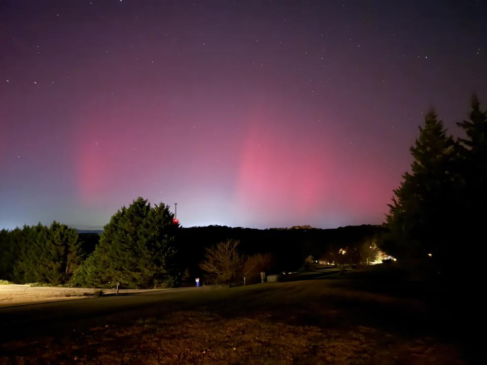 Viewers shared photos of red streaks and purple skies glowing above the hills. Others reported spotting the glow in metro Atlanta.