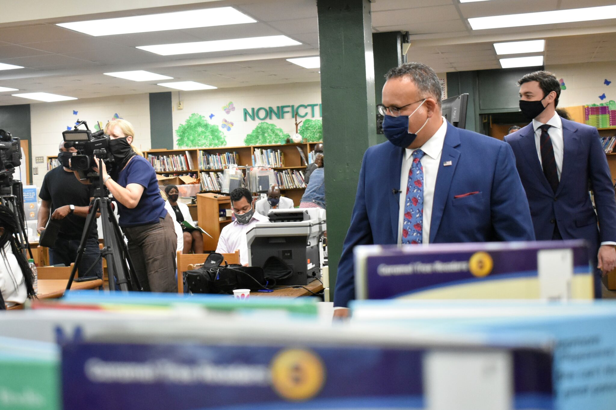 On Friday, U.S. Department of Education Secretary Miguel Cardona visited DeKalb County to tour Kelley Lake Elementary, a local school that used federal money to spruce up its ventilation system and roof.