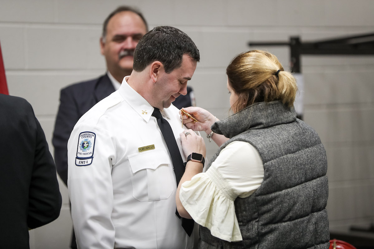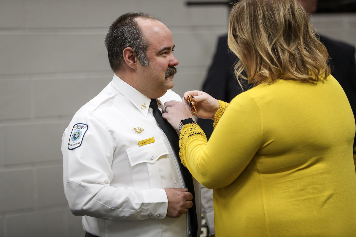 Black intends to make this type of public recognition for county public safety personnel standard. The department will hold future badge pinning ceremonies when staff members are hired and promoted.