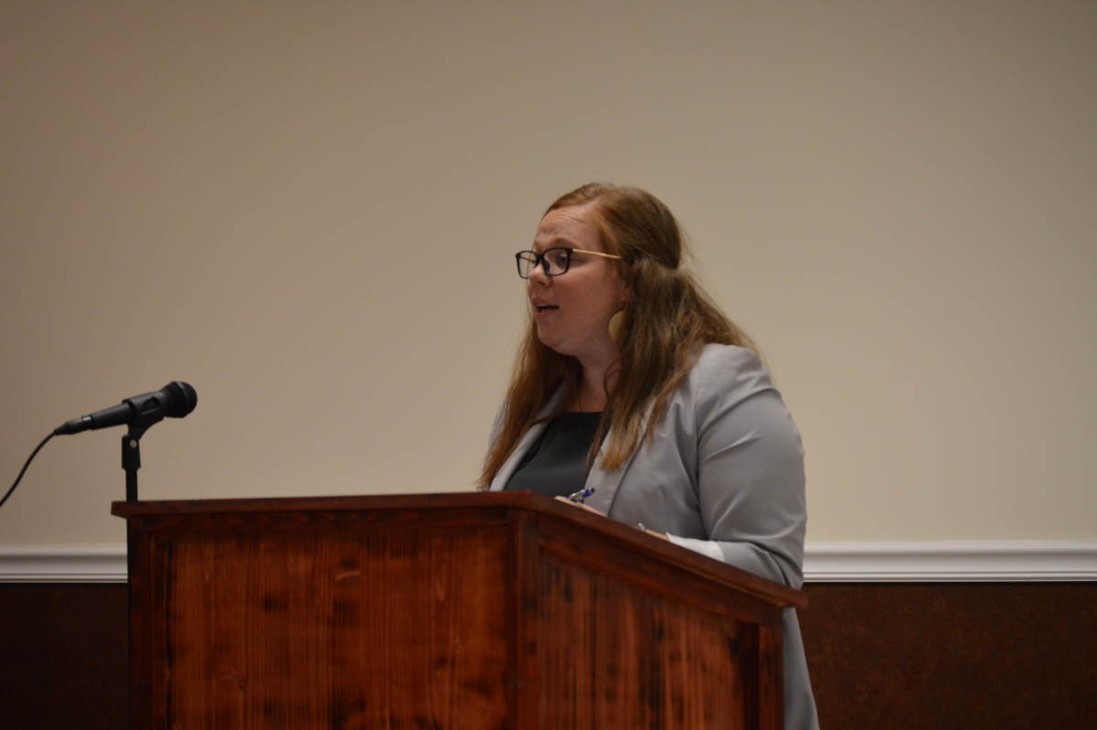 CAO Emily Woodmaster explains the budget process to the Baldwin City Council during a special called budget hearing on Friday, June 23, 2023. (Jerry Neace/NowHabersham.com)