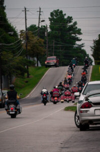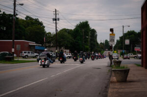 Baldwin Mayor Jerry Neace led the riders in prayer. They then revved up their engines and hit the open road. Hall County Sheriff’s Officers Ricky Nix and Mike Free led the pack as they wound their way through Cleveland, Helen and Clarkesville on their way back to Baldwin.