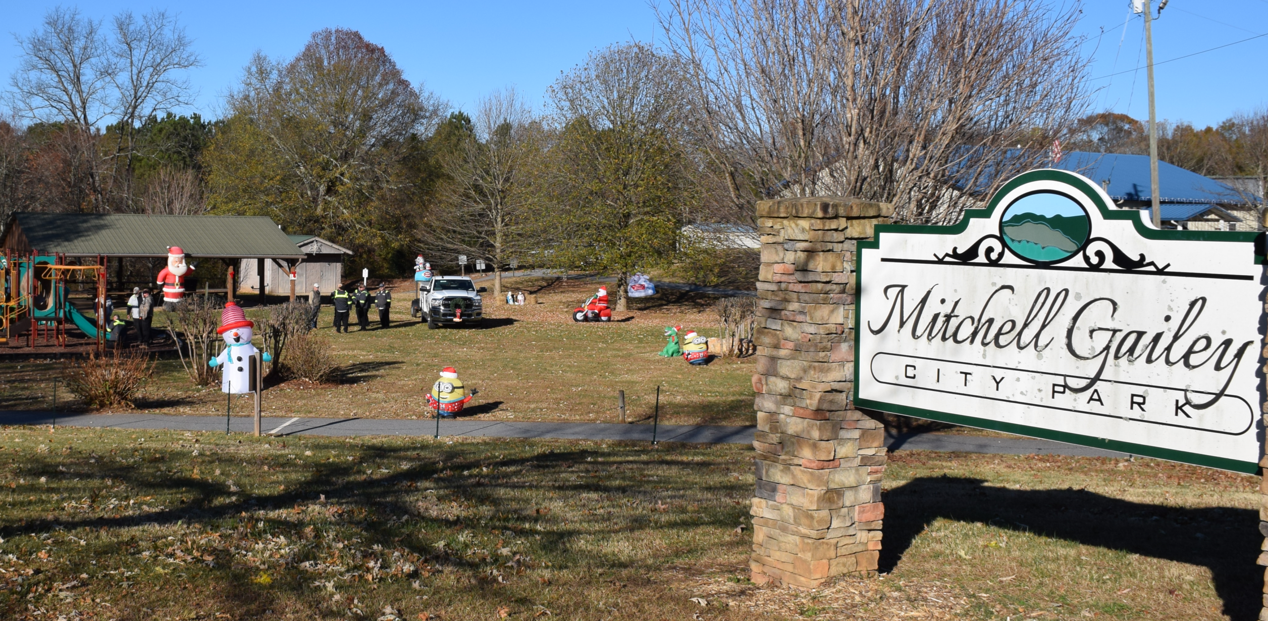 The cold weather earlier this week has not deterred the dedicated crews who worked diligently Monday and Tuesday to install an array of Christmas lights and themed inflatables throughout Mitchell Gailey Park. The festive spirit flows through to the Farmers Market, which received a holiday makeover in preparation for the upcoming celebration.
